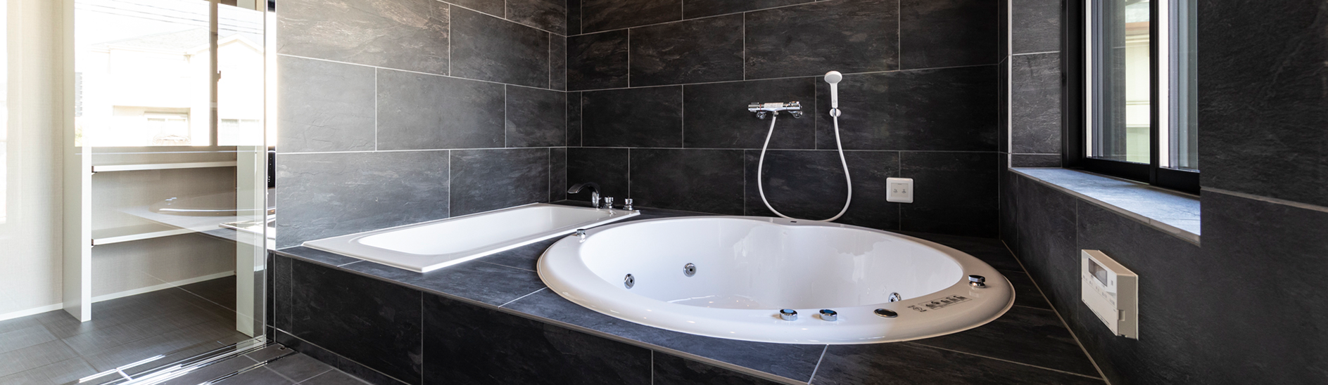 大手メーカーの規格ユニットバスは、壁や床の仕上げはパネルが多く、シャワーや浴槽などは、そのメーカーから選択します。