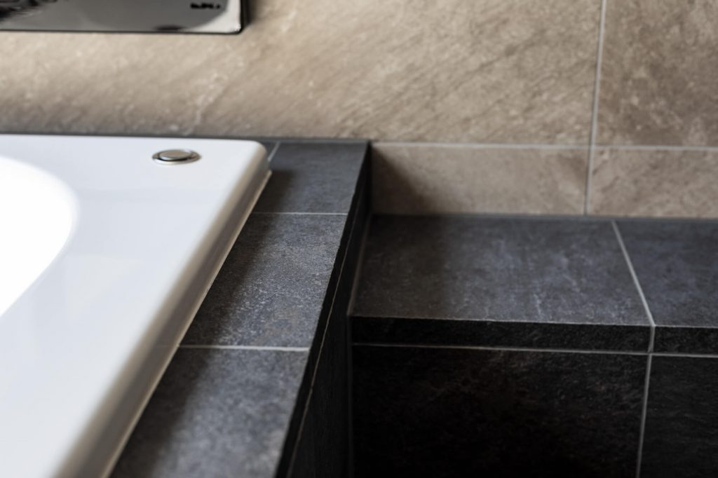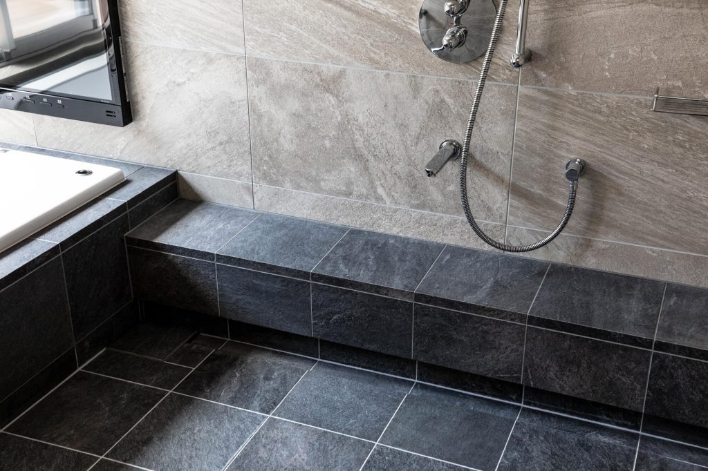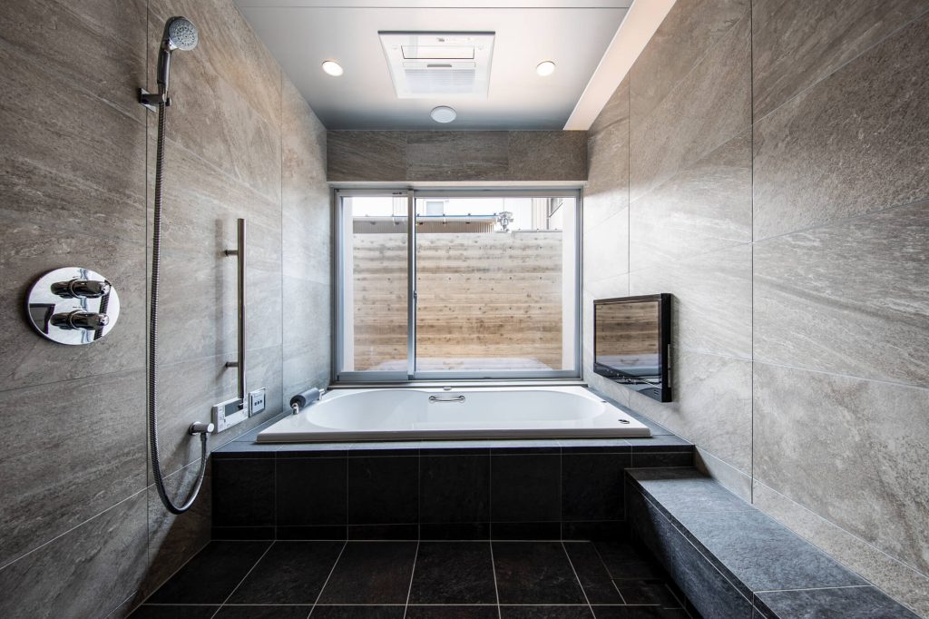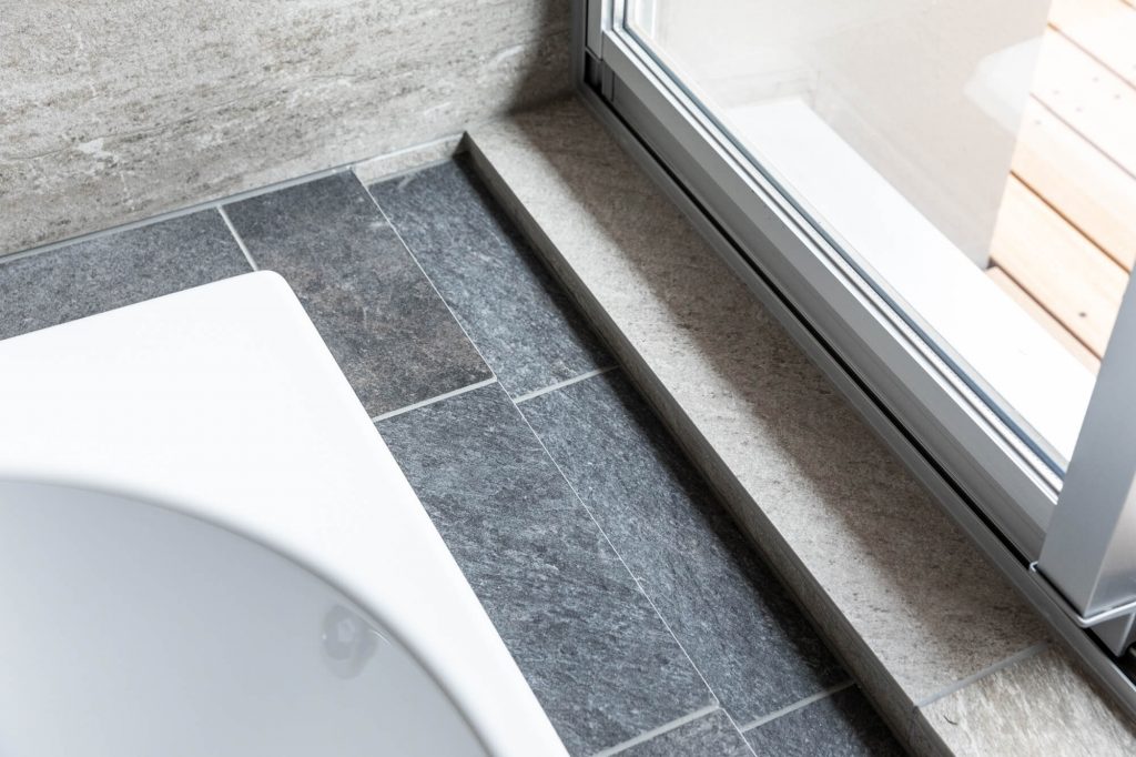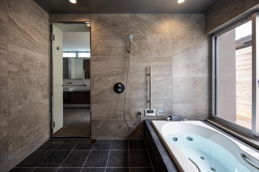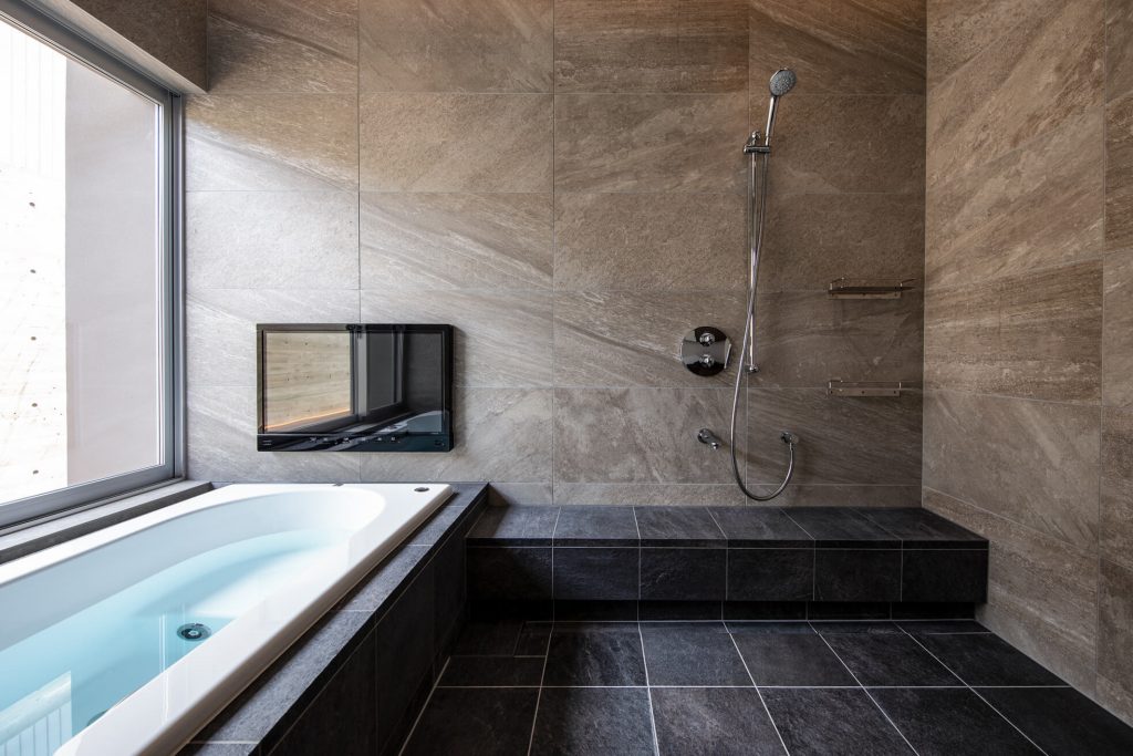 大判パネルと選び抜かれた素材が空間を整え、 静かな品格と落ち着きを纏う、格式あるバスルーム